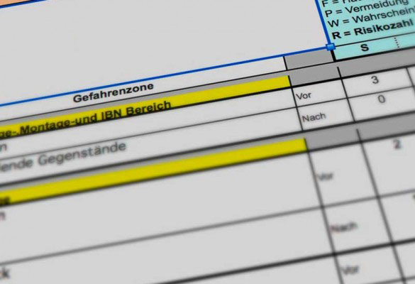 Gefahrenanalyse und Risikobeurteilung nach Maschinenrichtlinie.